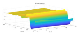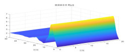 在本节, 使用有限差分法和Matallb软件对模型(1.2)进行数值模拟, 通过模拟的结果来验证定理2的稳定性结论.本节主要展示平衡点$ L_{4} $的时空演化图和各种群密度随时间变化的曲线图, 取模型(1.2)中的参数如下,