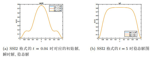 在进行迭代运算求解时, $ u^{0}, u^{1} $的值需要通过一阶SSI格式计算得出, 再带入二阶格式进行运算, 直到达到最后运算时间时, 即可得出近似解.